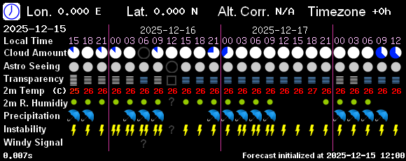 | Tid | Kvalitet | Skyer | Temp. | Seeing (1-8) | Klarhed (1-8) | Fugtighed | |